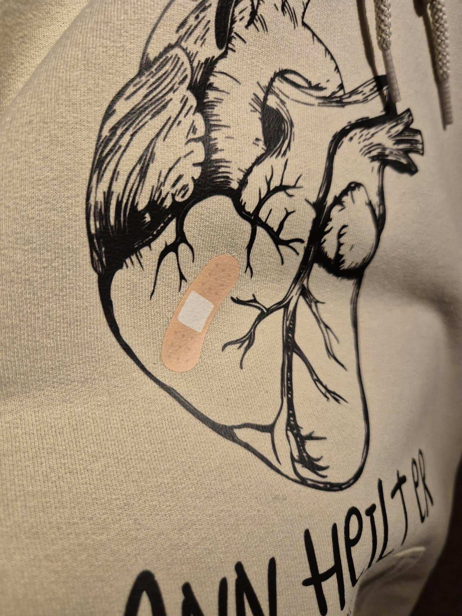 • Large front print: Meaningful text with heart motif and plaster